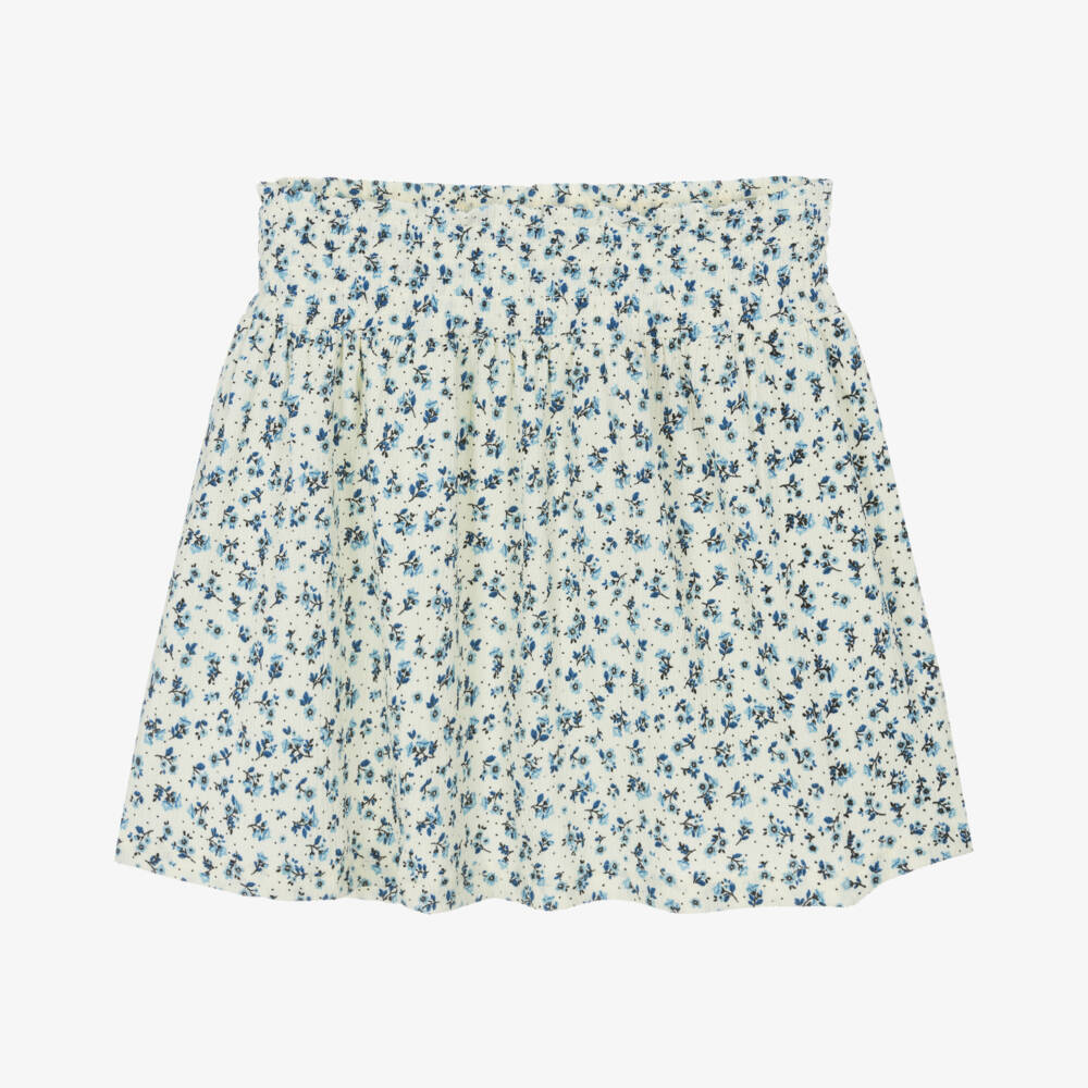 White skirt for girls by NAME IT, made in recycled jersey with a lightly textured feel. This loose-fitting, flared skirt has a pretty floral print in light and dark blue hues. It has an elasticated waistband for comfortable wear.