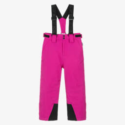 Neon pink technical ski trousers for boys and girls by NAME IT, made in durable, windproof and waterproof fabric. Offering great protection on the slopes, they have taped seams, removable, elasticated shoulder straps and adjustable cuffs for comfortable wear with ski boots. There are useful zipped front pockets, an adjustable waist and inner gaiters for extra protection from the elements. Fastening with a zip and poppers, they have reflective detailing for added safety.