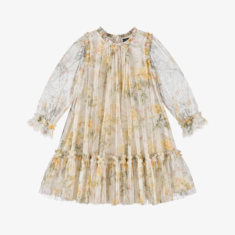 Girls Ivory & Yellow Floral Tulle Dress