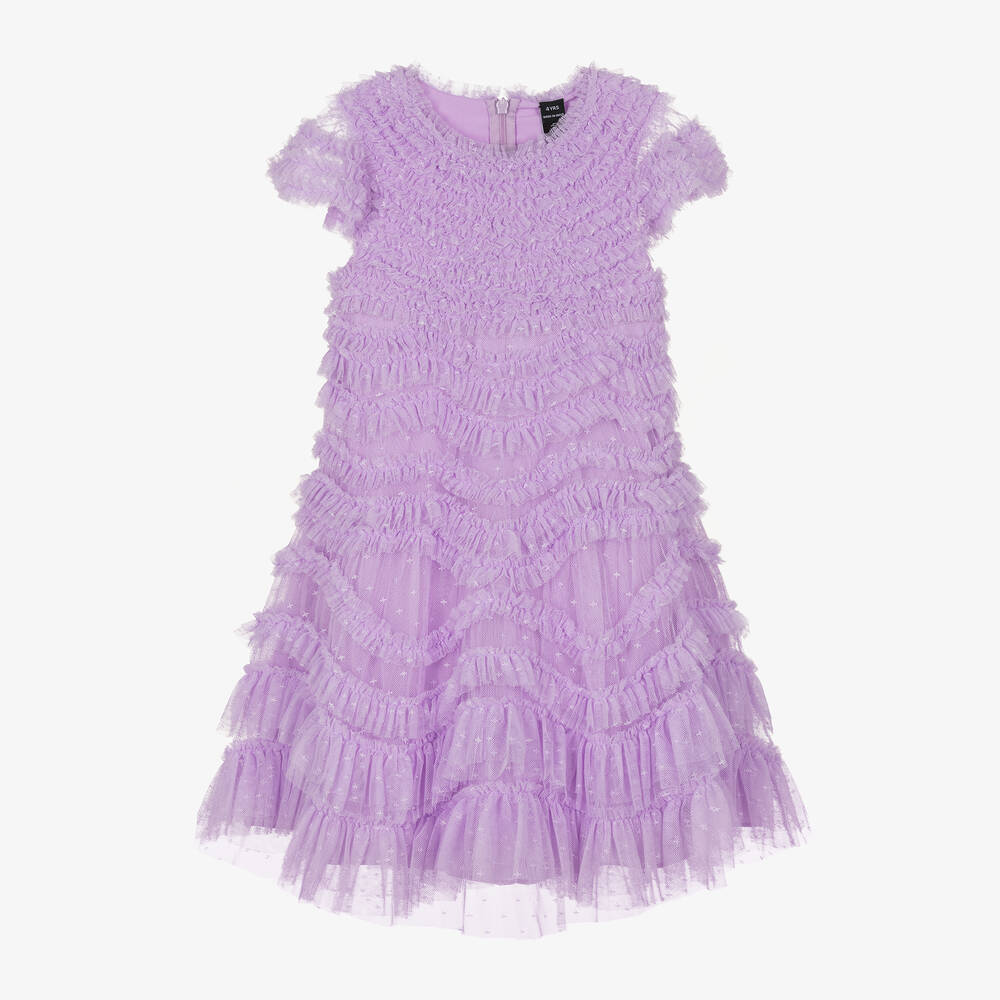 Girls Lilac Purple Tulle Ruffle Dress