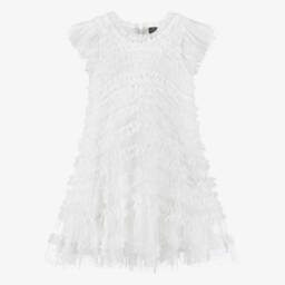 A beautiful pale blue dress for girls by Needle & Thread, featuring a charming floral garden print. This elegant design is made in delicate tulle with a soft lining and a zip fastening on the back. It has long sheer sleeves and lovely lace-trimmed cuffs.