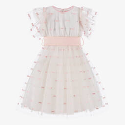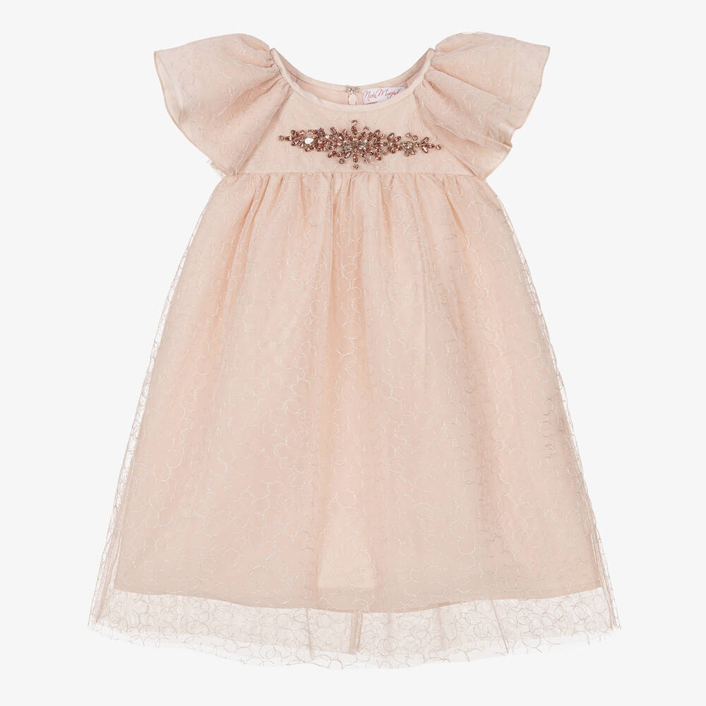 Girls Pink Taffeta & Tulle Jewelled Dress