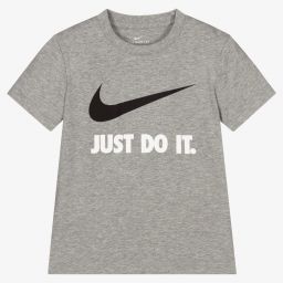 Green cotton-blend T-shirt for boys by Nike, made in soft jersey for comfortable wear. This casual tee has a bold graphic print on the front, featuring the brand's iconic Swoosh logo in white together with an array of colourful Swoosh graphics.