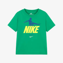 White Nike T-shirt for boys, made in a soft cotton jersey blend with a football-themed logo print on the front.