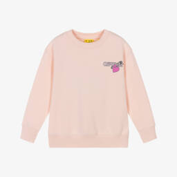 Boys black sweatshirt by contemporary luxury brand, Off-White. This relaxed, graphic style has striking neon yellow painterly arrow motifs on the front and back for bold designer appeal. It is made in soft cotton jersey and has a ribbed crew neckline for laid-back comfort.