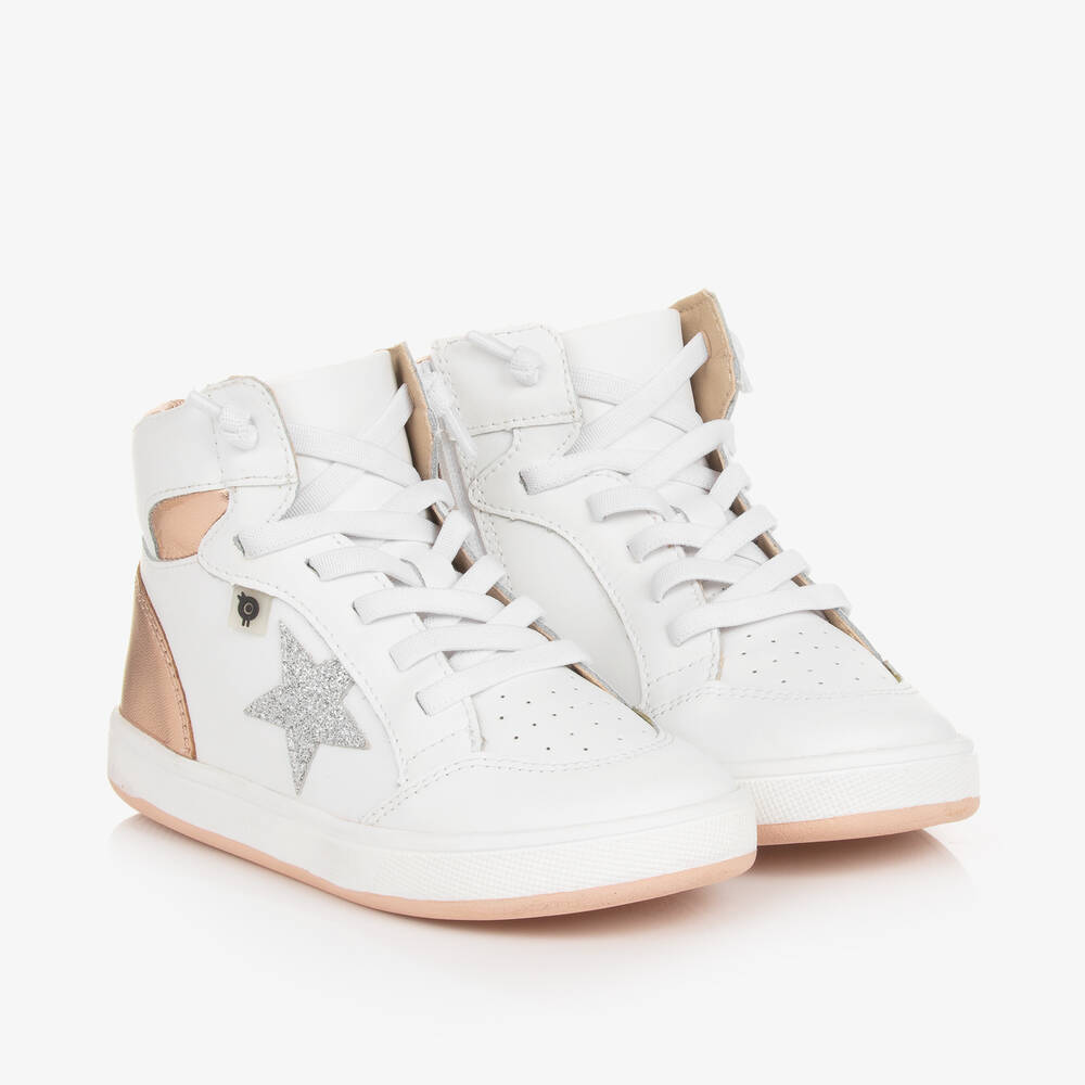 Girls White Leather High-Top Trainers