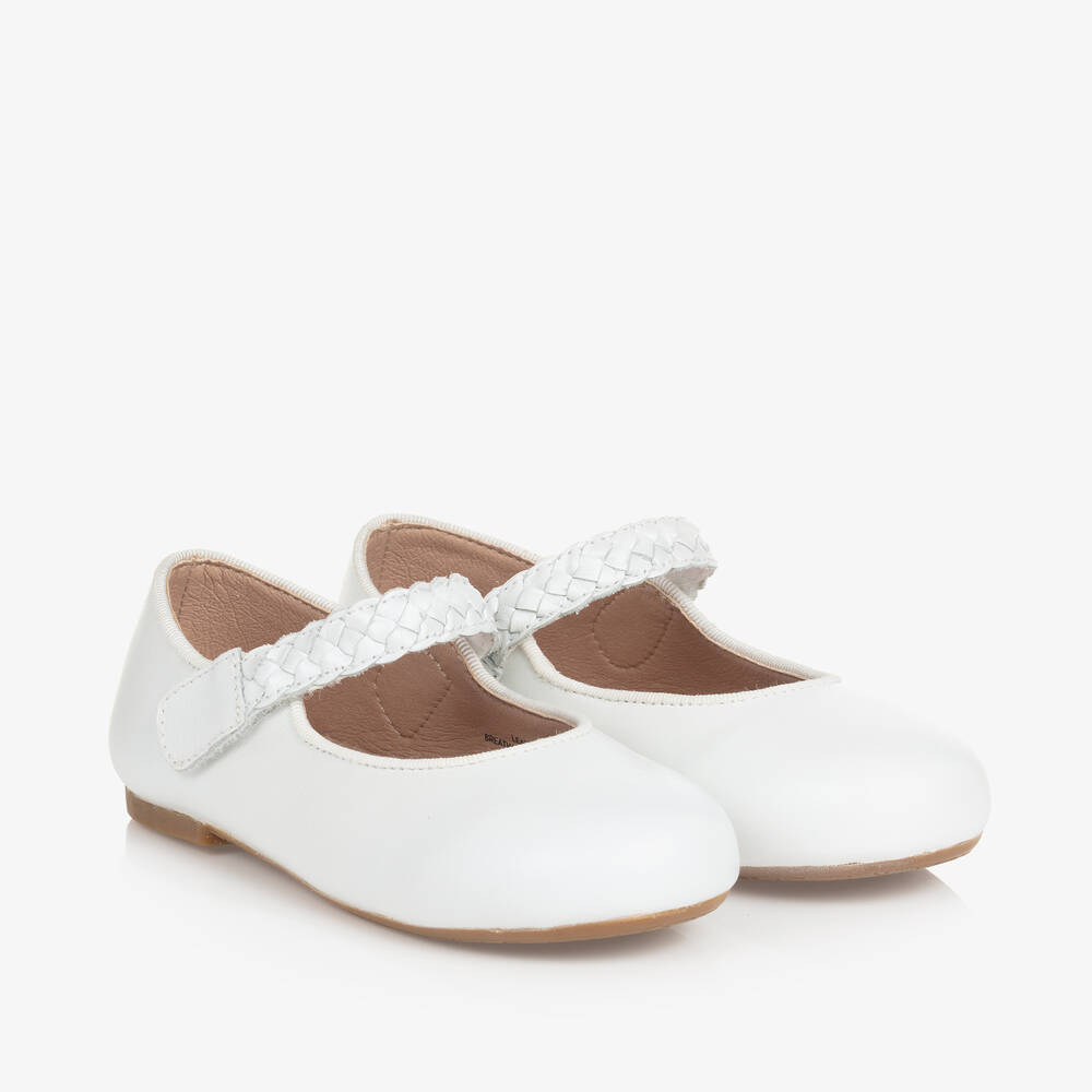 Girls White Leather Pumps