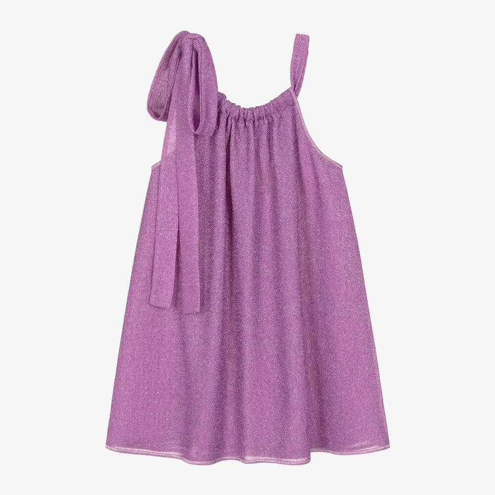 Effortlessly chic for girls, this purple lumière dress by Oséree is infused with a gorgeous glitter sparkle, a signature look from the luxury resort wear brand. Sheer and lightweight with a soft mesh lining for comfort, this simple style is gathered from the top with adjustable shoulder straps that tie on one side in a beautiful bow. An easy-to-wear look, it is ideal for poolside and parties alike.