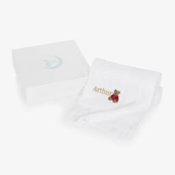 Lovely white hooded bathrobe for little boys and girls by British brand, Paint My Dreams. Made in soft cotton towelling, it is delicately embroidered with your child's initial on the chest, surrounded by sweet blue and beige feathers. There is a tie belt around the waist to simply fasten the style.