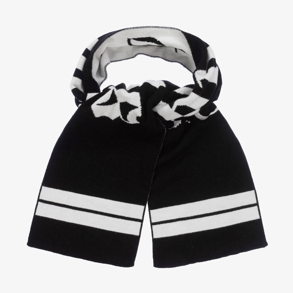 Black scarf for boys and girls by luxury brand Palm Angels, knitted in a soft wool blend with a hint of cashmere. For instant designer appeal, this stylish accessory is defined with a bold intarsia Palm Angels logo in white. The soft, mid-weight design ensures comfort and warmth in the colder months.