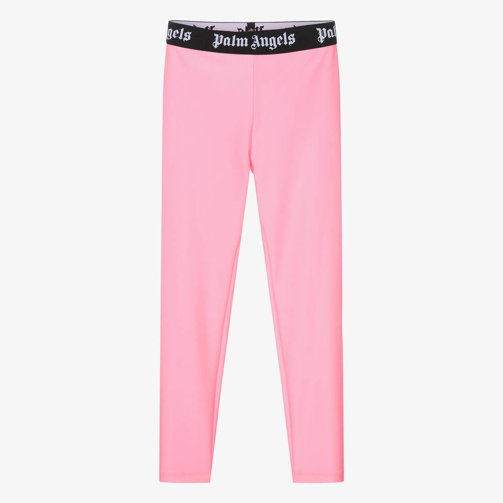 Great for a cool and comfortable look, these bright pink leggings for teen girls are by Palm Angels. Undeniably iconic, the black elasticated waistband features bold white jacquard Palm Angel logos for a signature finish. Made from silky and stretchy jersey, these full-length leggings are super casual and easy to style.