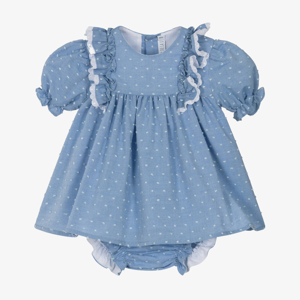 Baby Girls Blue Plumeti Cotton Dress