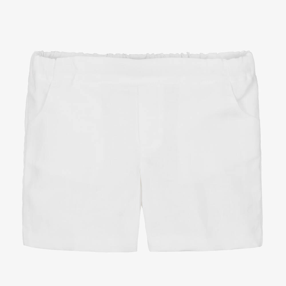 Classic white shorts for little boys by Paloma de la O, made from a lightweight linen and cotton blend. A smart-casual style, these chino shorts have rounded front pockets and an internal adjustable waistband to tailor the fit. They have a soft cotton lining for comfort.