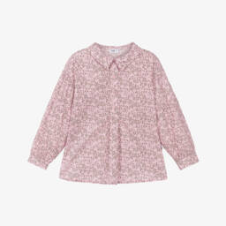 A delightfully timeless beige blouse and shorts set for girls by Paloma de la O. The dark beige cotton twill blouse has a pretty pink floral print, a lace-trimmed collar and frilly elasticated cuffs. It pairs with lighter beige pull-on shorts, made in velvety soft needlecord with side pockets and a comfortable full lining.