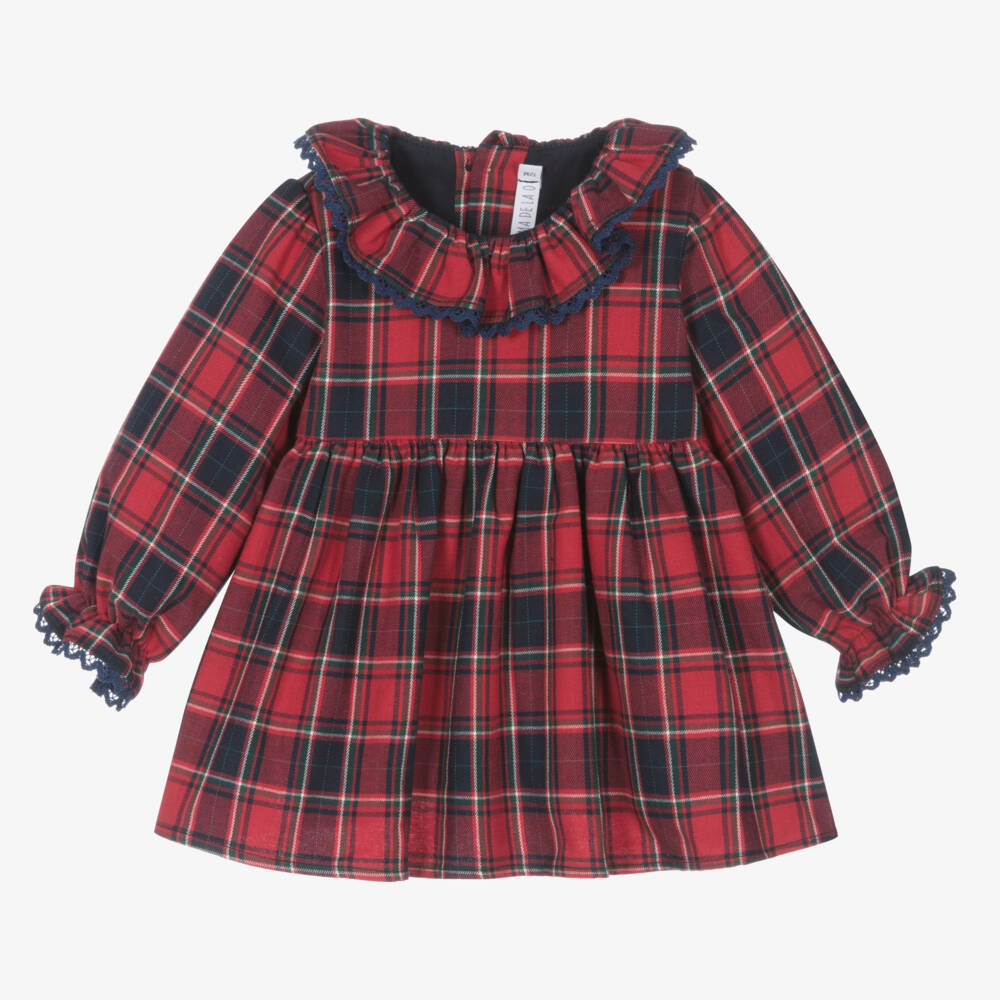 Girls Red Tartan Cotton Dress