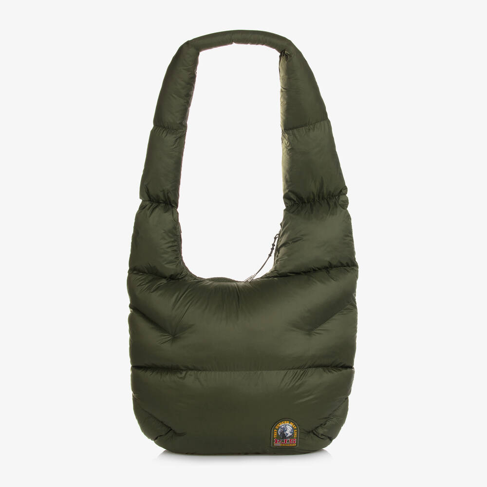 Inspired by the adult collection from the luxury outerwear brand Parajumpers, a khaki green tote bag for girls. Silky smooth and filled with mid-weight padding for a fun puffer-style finish, this bag has a spacious compartment which fastens with a zip. The signature logo badge is on the front for brand recognition.