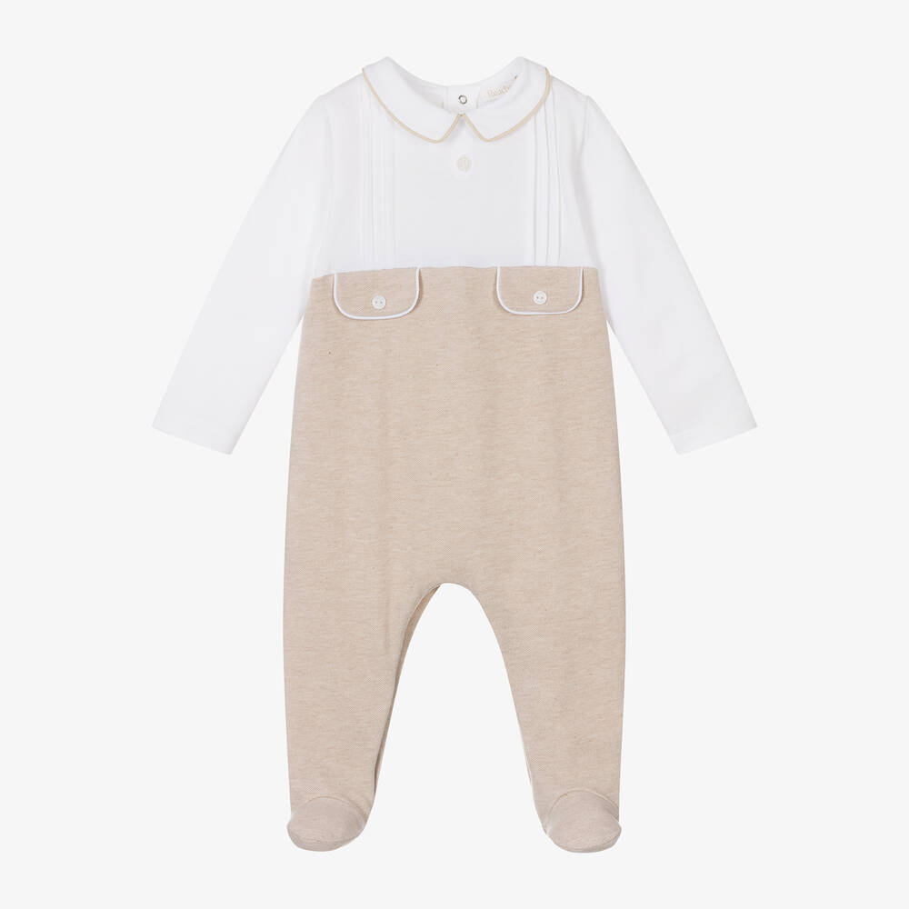 Boys Beige Cotton Babygrow