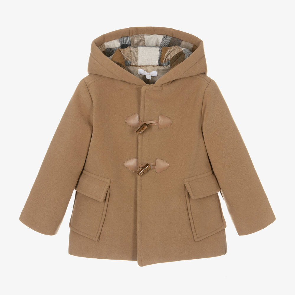 Boys Beige Hooded Duffle Coat