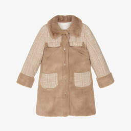 Ideal for the cooler weather, this smart charcoal grey coat for boys is by Patachou. Soft and felted with a silky smooth lining, it has contrasting beige velvet trims on the pointed collar, flap pockets, and double-breasted fabric-covered button fastenings for a classic look.
