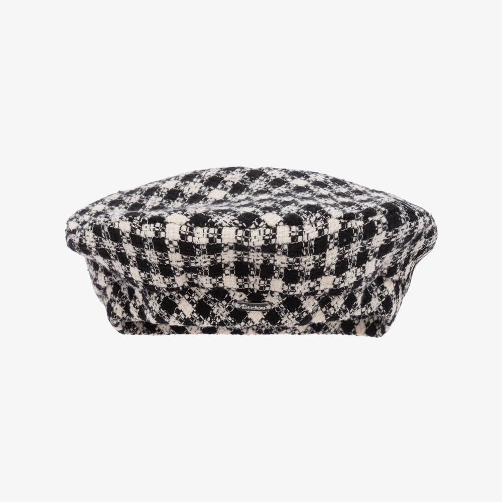 Girls Black & Ivory Tweed Beret