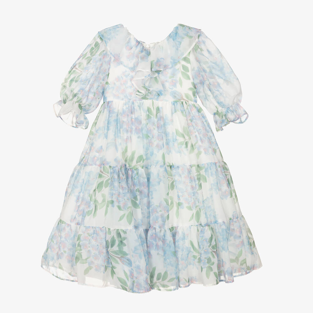 Girls Blue Floral Chiffon Dress