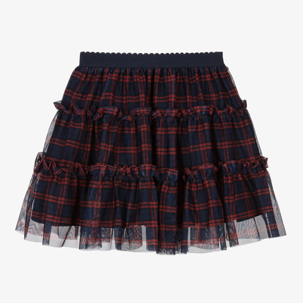 Girls Blue & Red Tartan Tulle Skirt