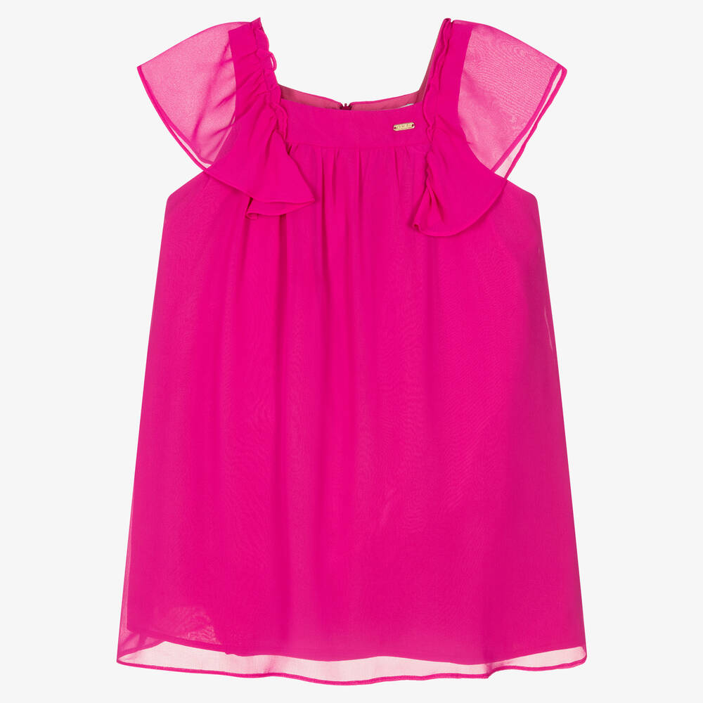 Girls Fuchsia Pink Chiffon Dress