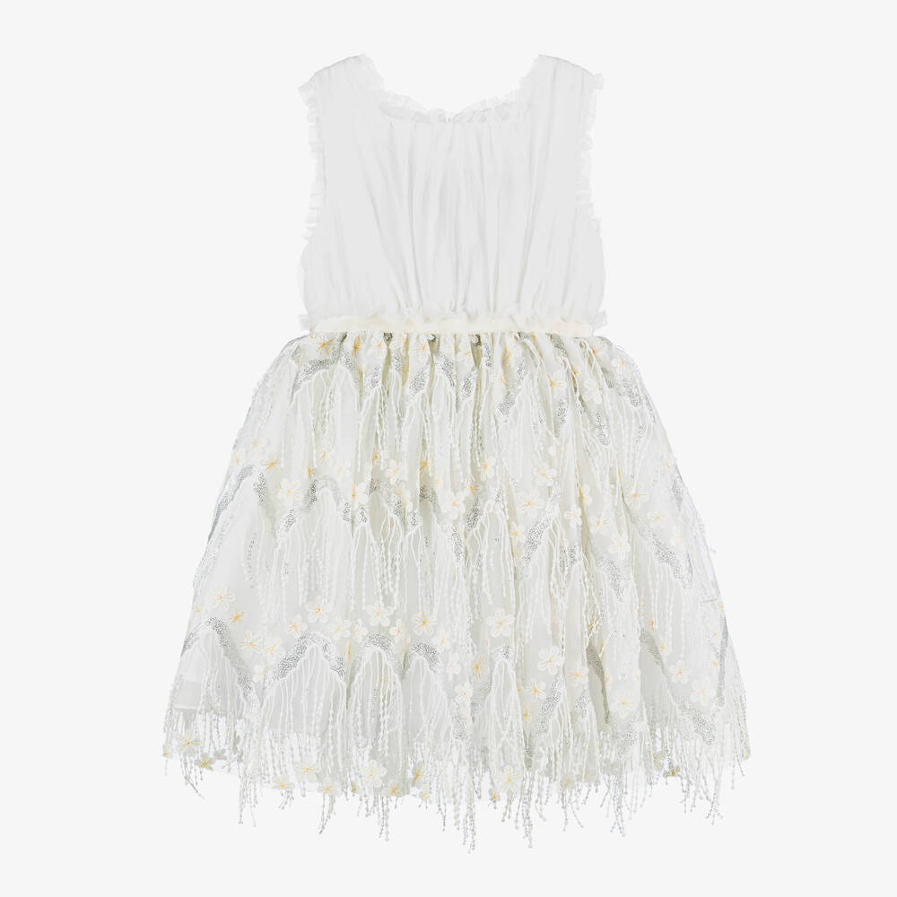 Girls Ivory Chiffon & Sequinned Tulle Dress