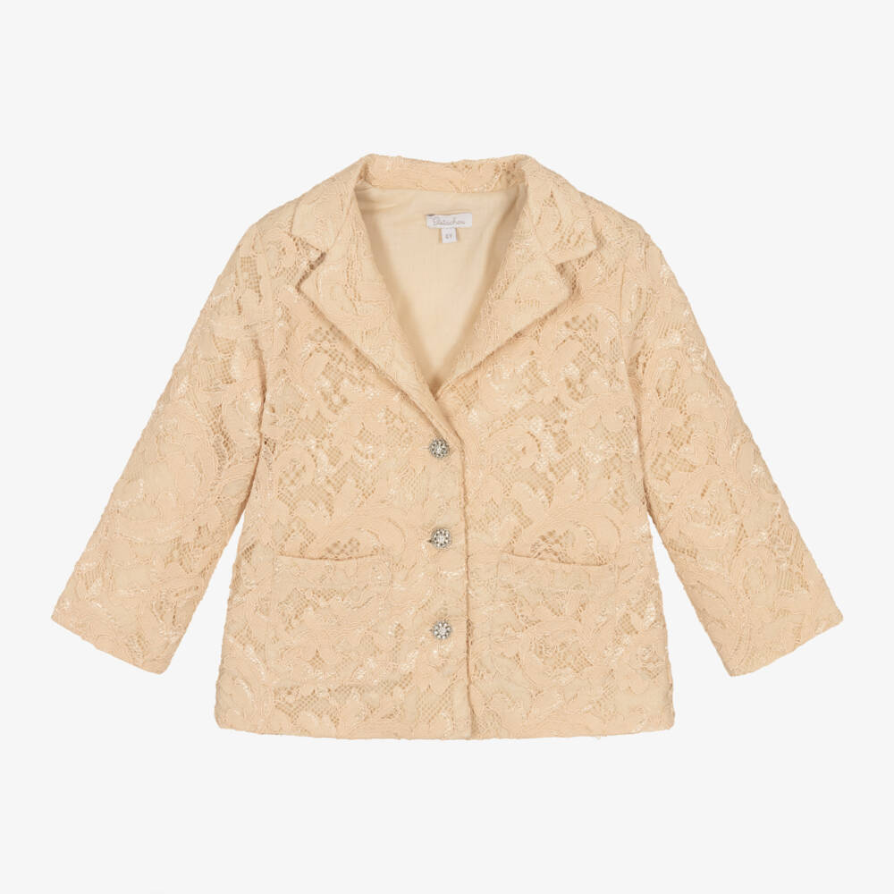 Girls Light Beige Lace Blazer