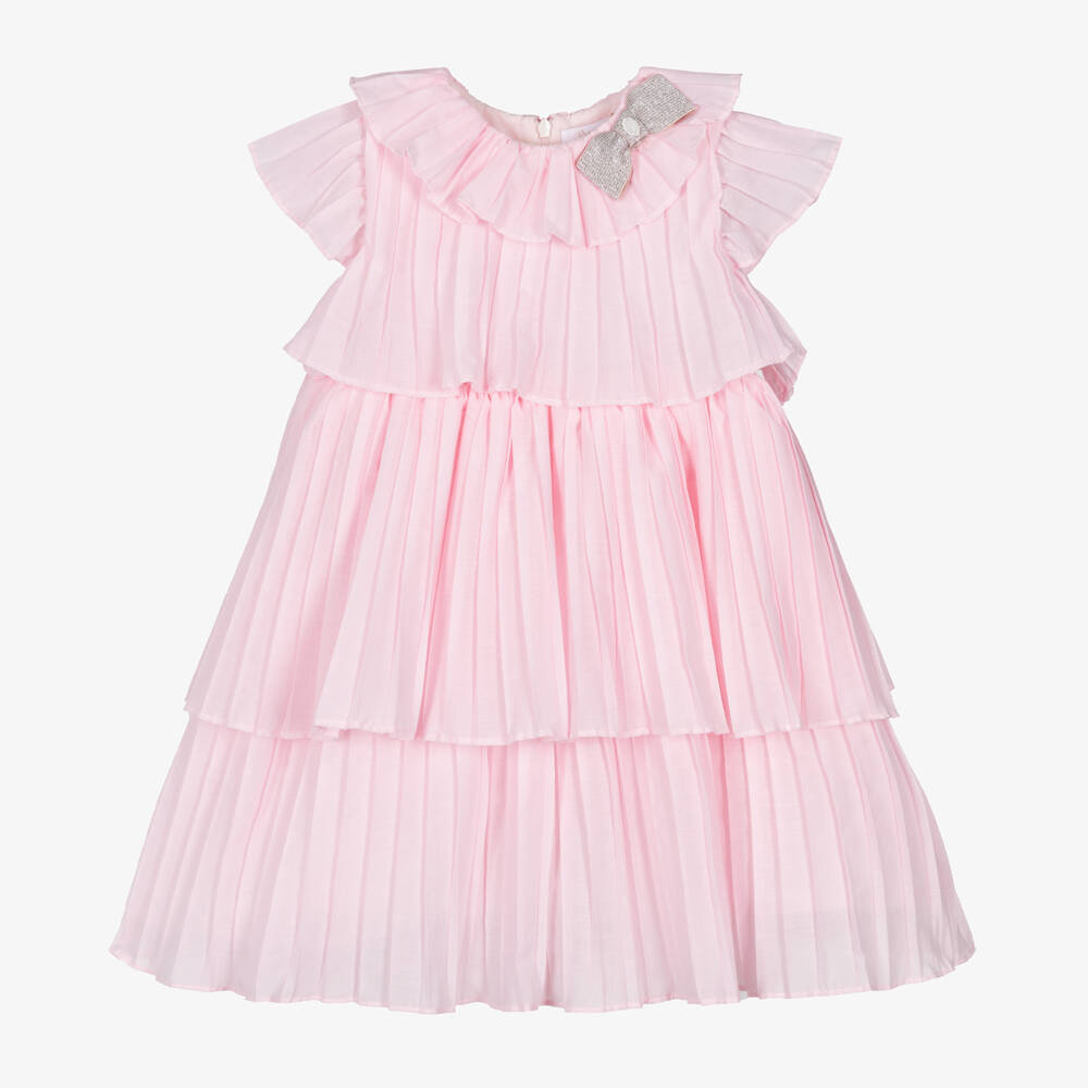 Girls Pale Pink Pleated Cotton Dress