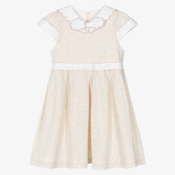 In pink, this lovely special occasion dress for girls is by Patachou. Made in sheer lightweight chiffon, it has elegant puffed sleeves, pretty ruffle trims, and a statement bow on the front. Lined in soft cotton for comfort and modesty, it fastens neatly with a concealed zip on the back.