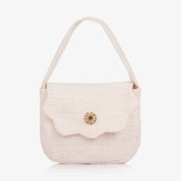 Trimmed with an eye-catching sequin bow, a lovely pink handbag for girls by Patachou. Made in elegant crêpe fabric with a small carry handle, it has a cotton-lined compartment that fastens with a popper.