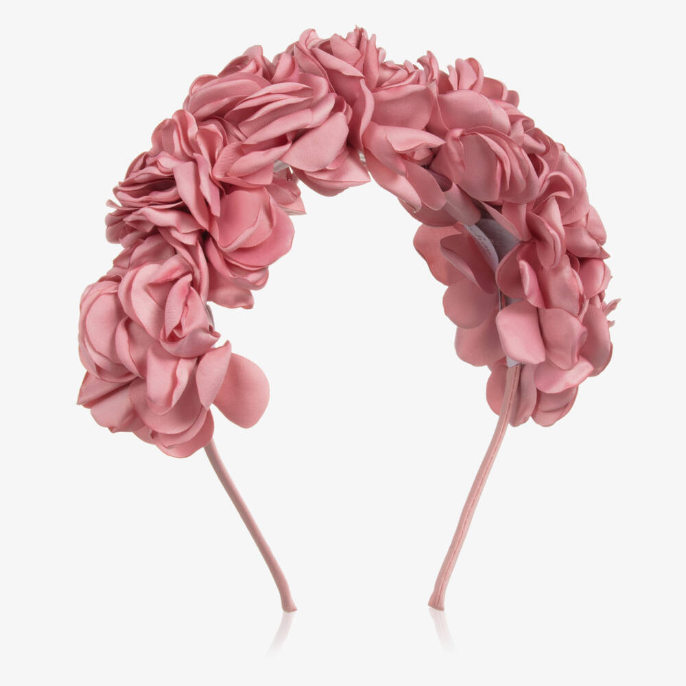Exclusive to Childrensalon, a gorgeous pink flower hairband for girls by Portuguese brand Patachou. The satin-covered slim band is decorated with a row of lovely fabric flowers, giving it a romantic and beautiful finishing touch.