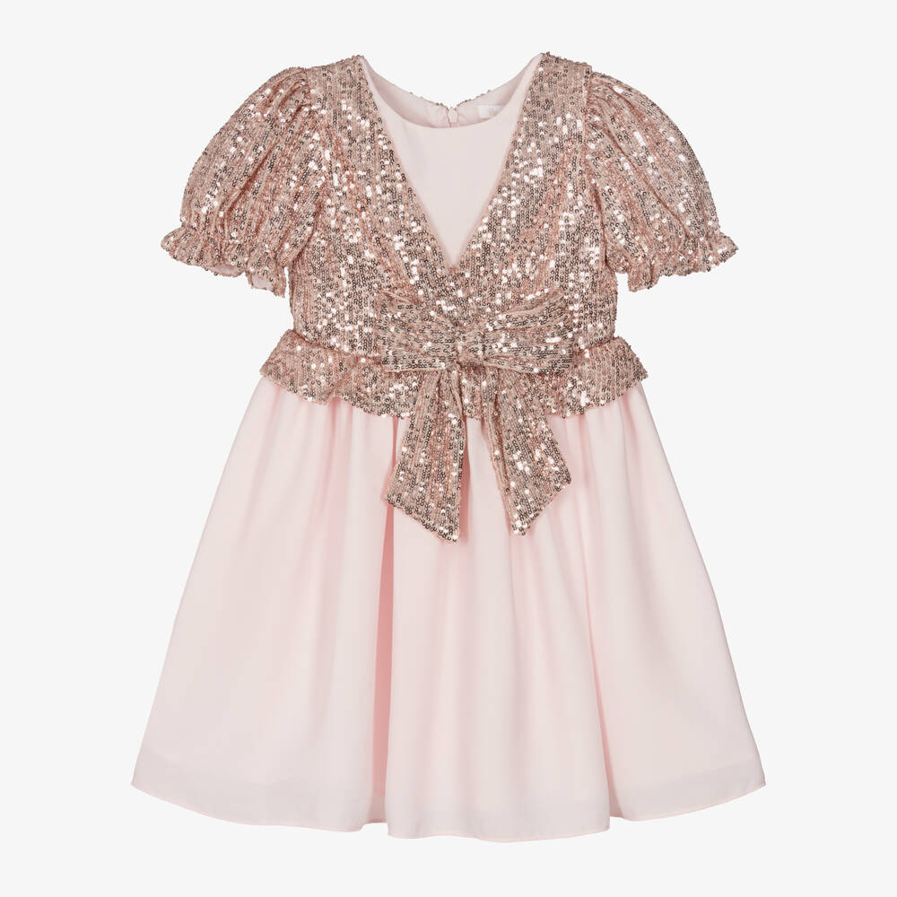 Girls Pink Sequin & Chiffon Dress