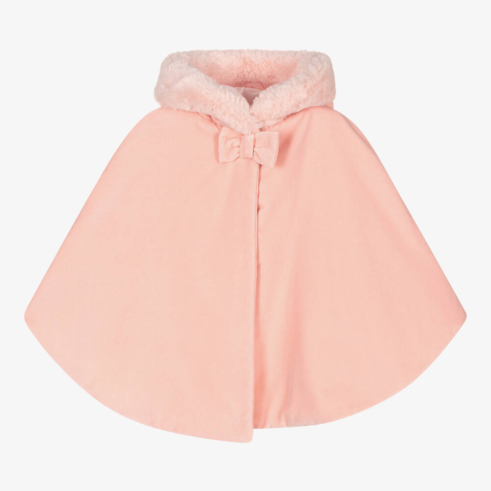 Exclusive to Childrensalon, this gorgeous pink cape is by Patachou. Perfect for smarter occasions, it is made in super soft, sumptuous velvet with a bow under the chin and faux fur trim on the hood. Lightly padded and fully lined in pink satin, it has concealed openings on the sides.