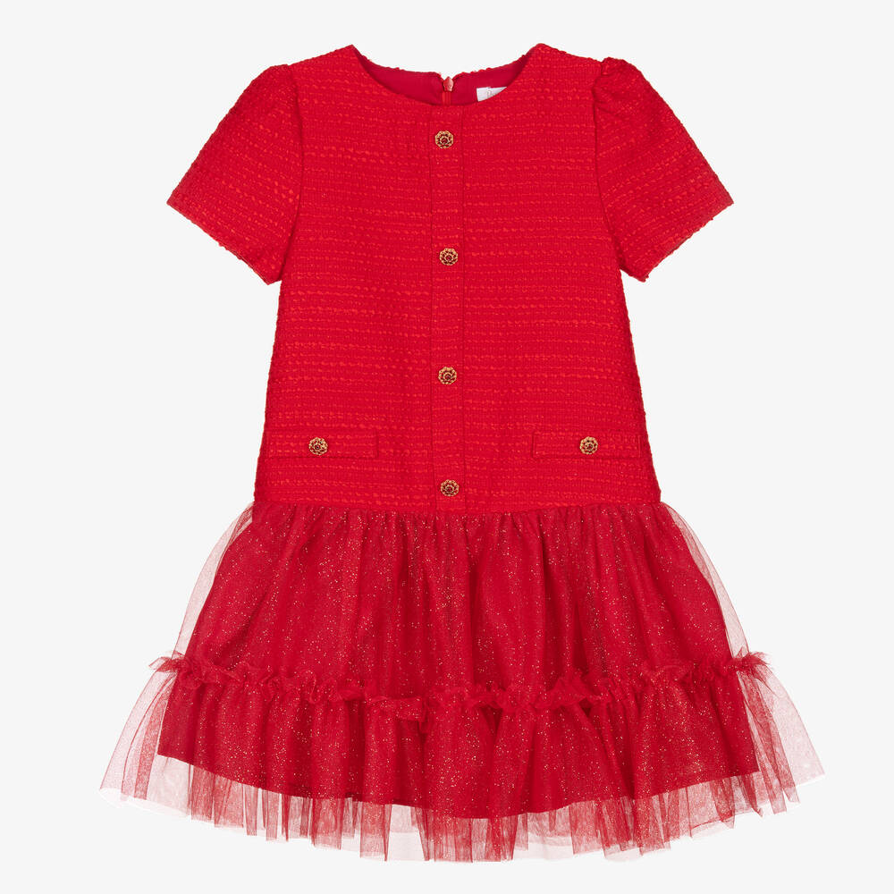 Girls Red Tweed & Tulle Dress