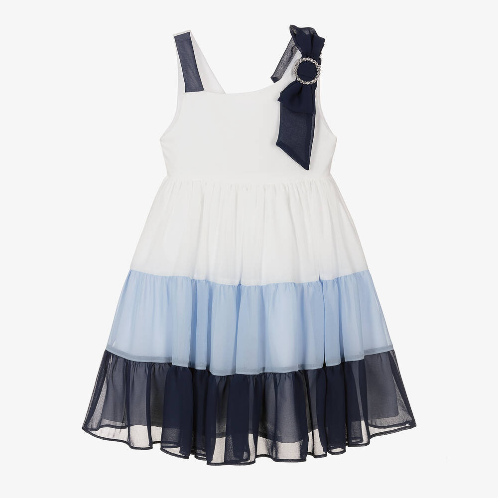 Girls White & Blue Chiffon Dress