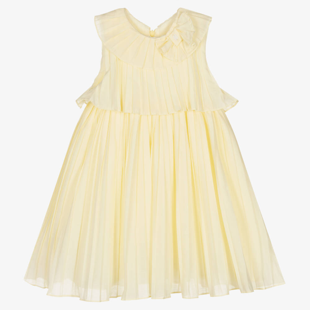 Girls Yellow Pleated Cotton Dress