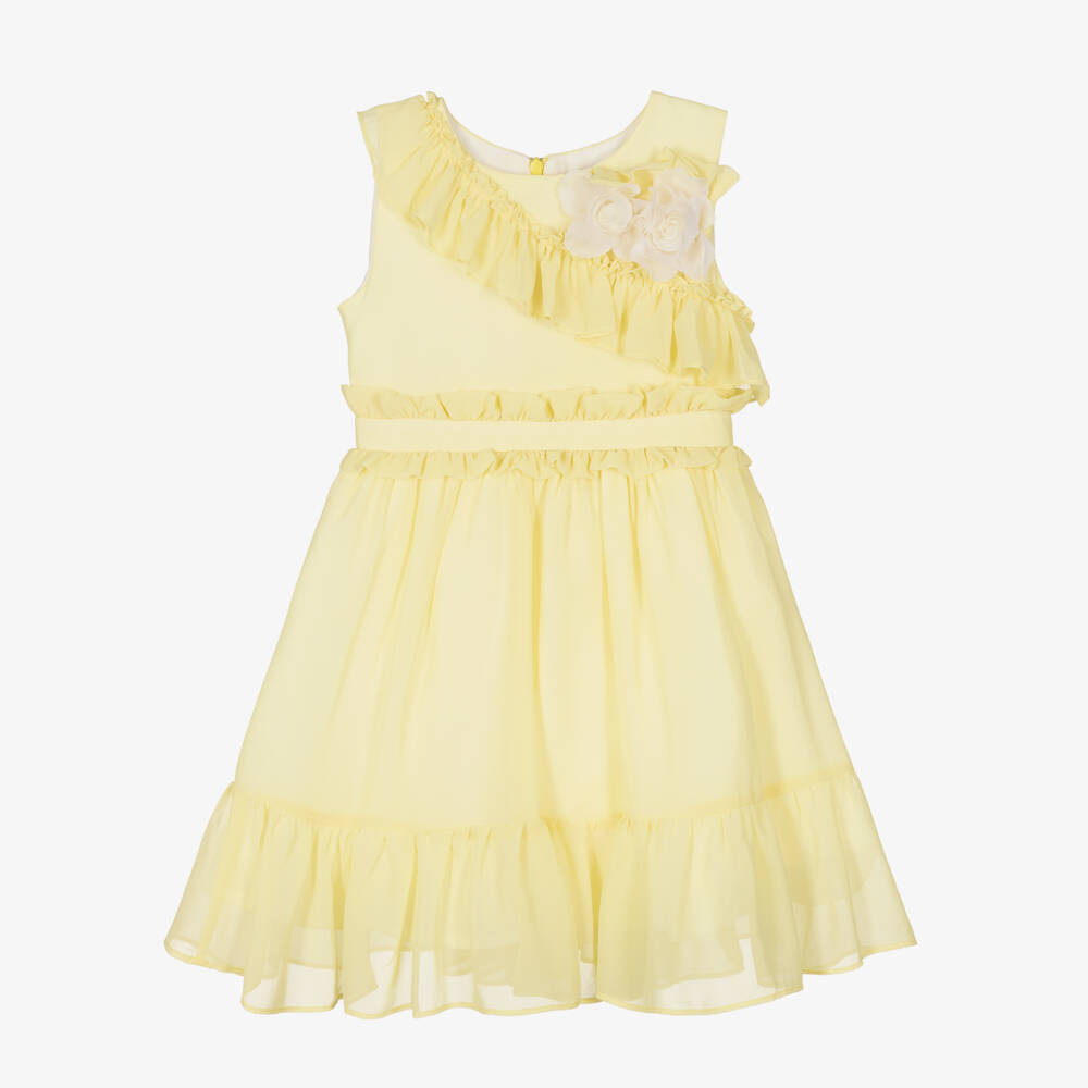 Girls Yellow Ruffle Crêpe Chiffon Dress