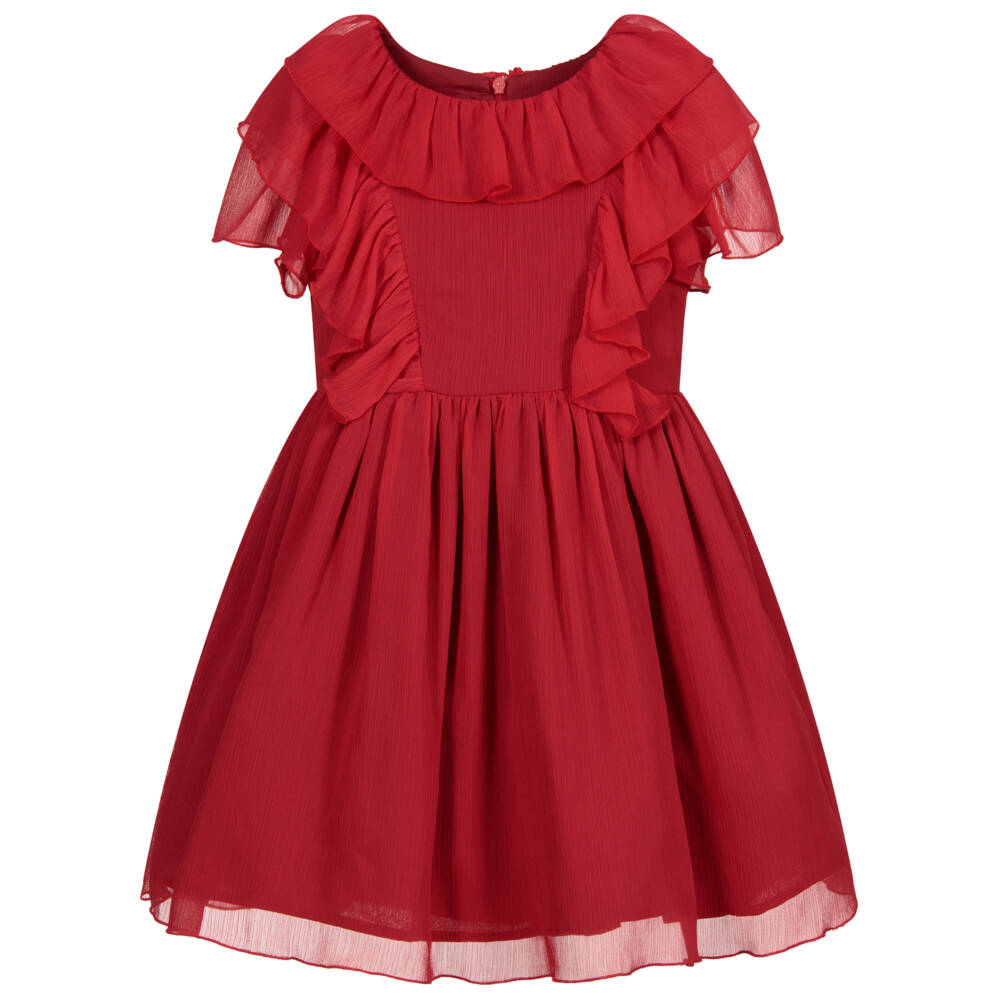 Designed by Patachou for girls, a pretty yellow chiffon dress with sheer ruffle sleeves and collar. Fully lined in lightweight cotton for comfort, there are layers of soft tulle underneath for added volume.