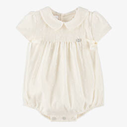 A sweet, traditional look for baby girls, this beige shortie set is by PAZ Rodríguez. Patterned with a classic gingham check, the shortie is made in soft seersucker and lined in lightweight voile. It fastens with buttons on the back and features a scalloped collar and decorative bow on the front. The accompanying tights are ideal for keeping little legs cosy.