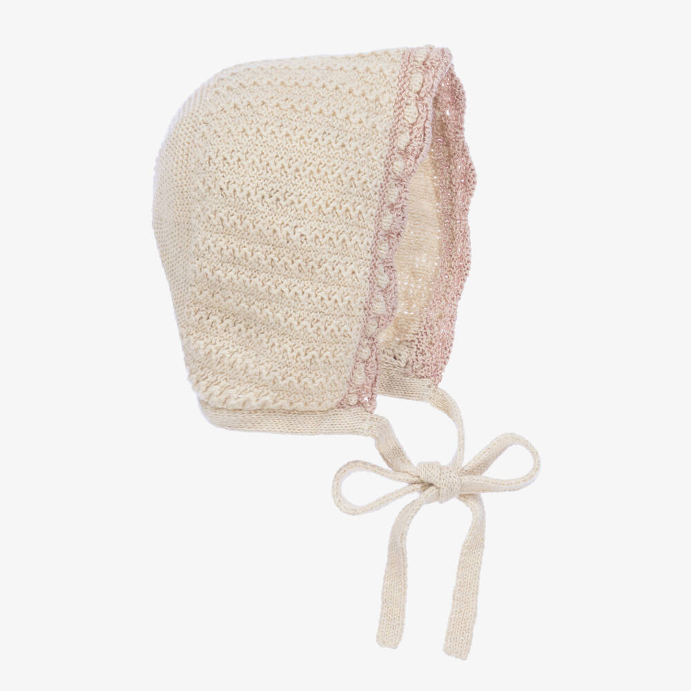 Baby Girls Beige Knitted Bonnet