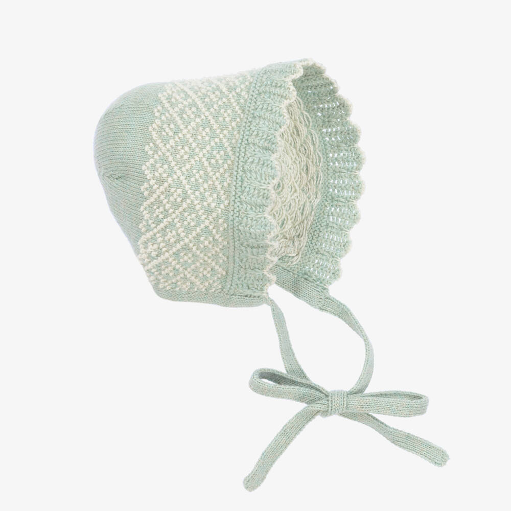 Baby Girls Green Cotton Cashmere Bonnet