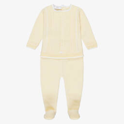 Beige Cotton Knit 2 Piece Babygrow