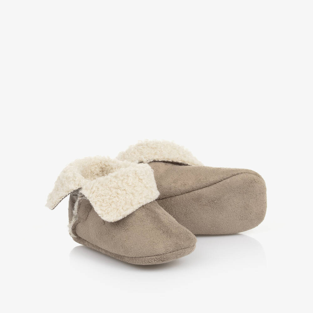 Cute faux suede leather pre-walker shoes for baby boys and girls by Spanish brand Paz Rodríguez. Warm and cosy they are lined with soft sherpa fleece and are lightweight and comfortable for little feet.