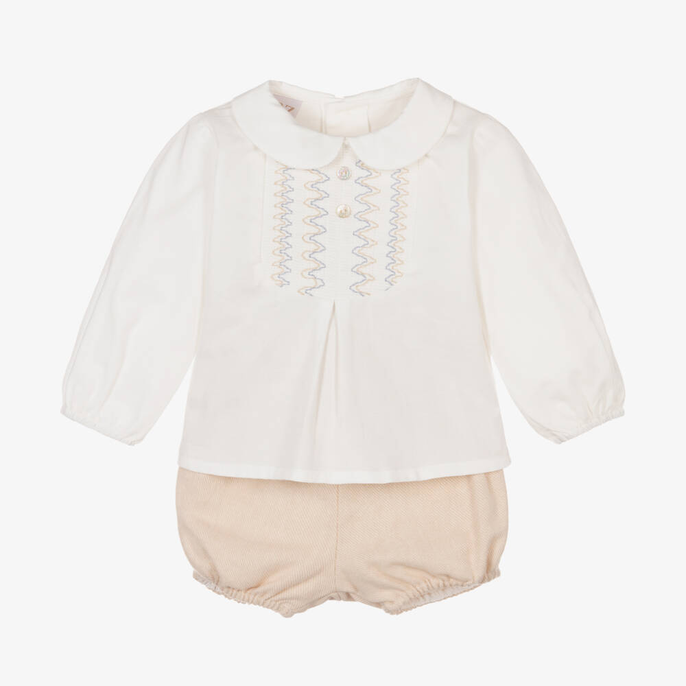 Boys Ivory & Beige Cotton Shorts Set