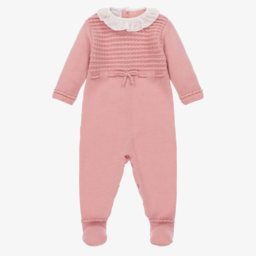 Girls Pink Knitted Merino Wool Babygrow