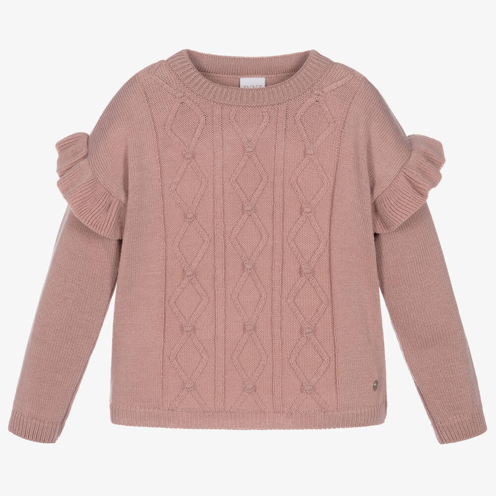 Girls Pink Knitted Wool Ruffle Sweater