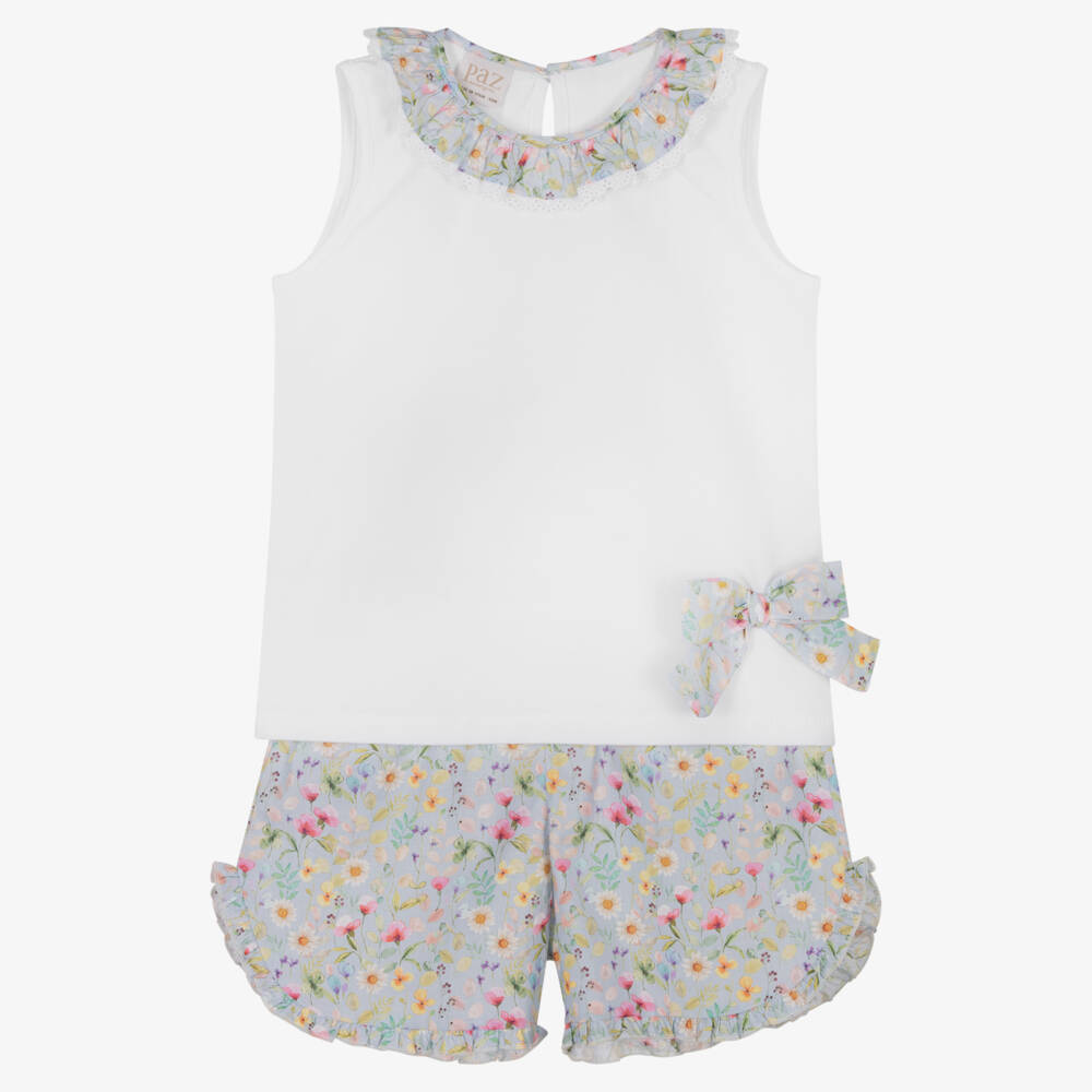Girls White & Blue Floral Shorts Set