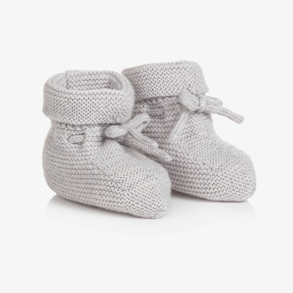 Grey Knitted Wool Baby Booties